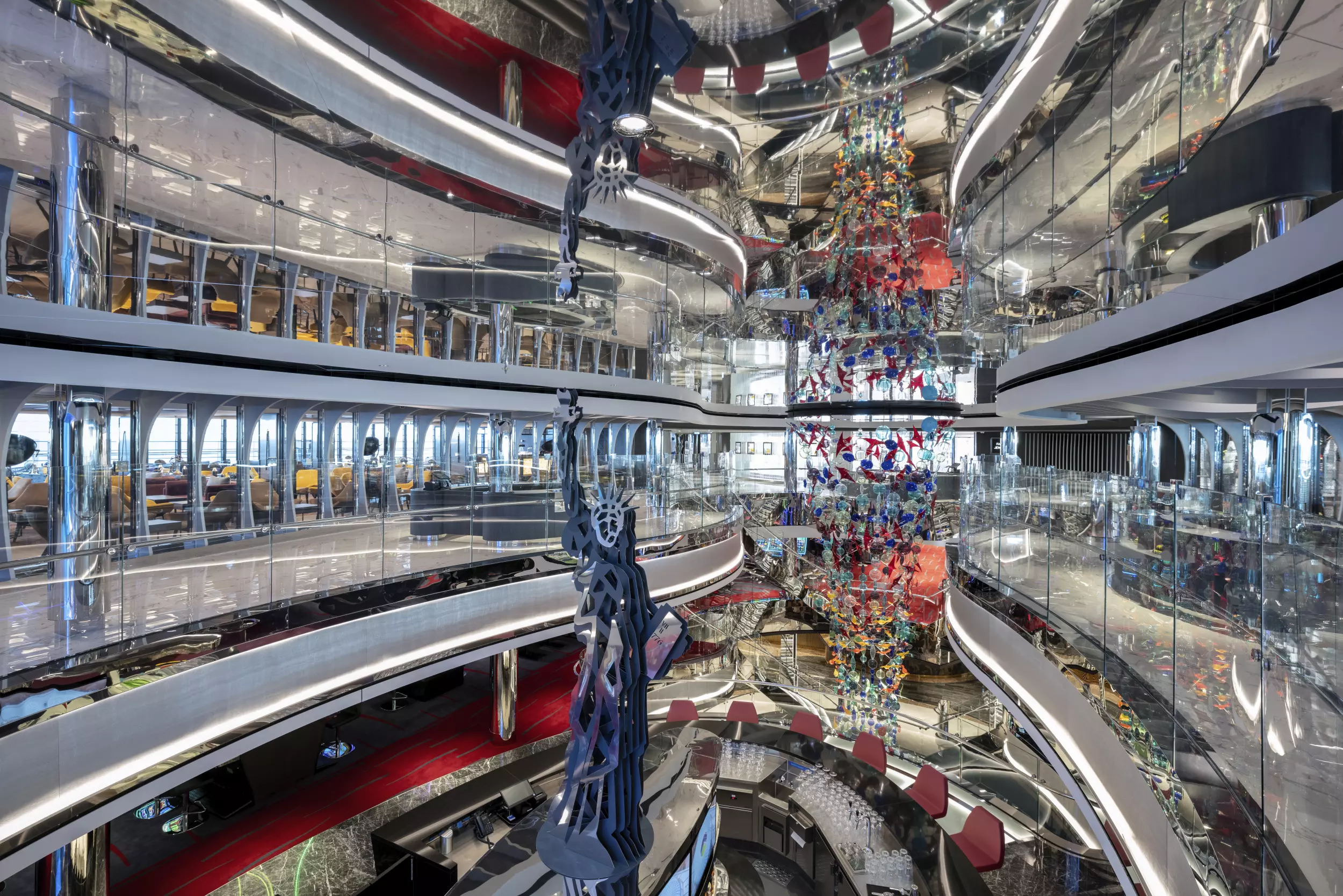 Kulinarik: 11 Restaurants, darunter das Butcher’s Cut Steakhouse, das Kaito Teppanyaki und die HOLA! Tacos & Cantina. 20 Bars und Lounges, darunter die Champagne Bar und die Sky Bar mit Panoramablick.
